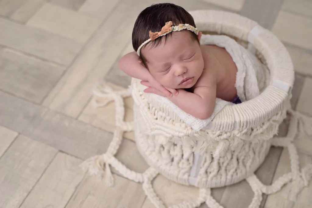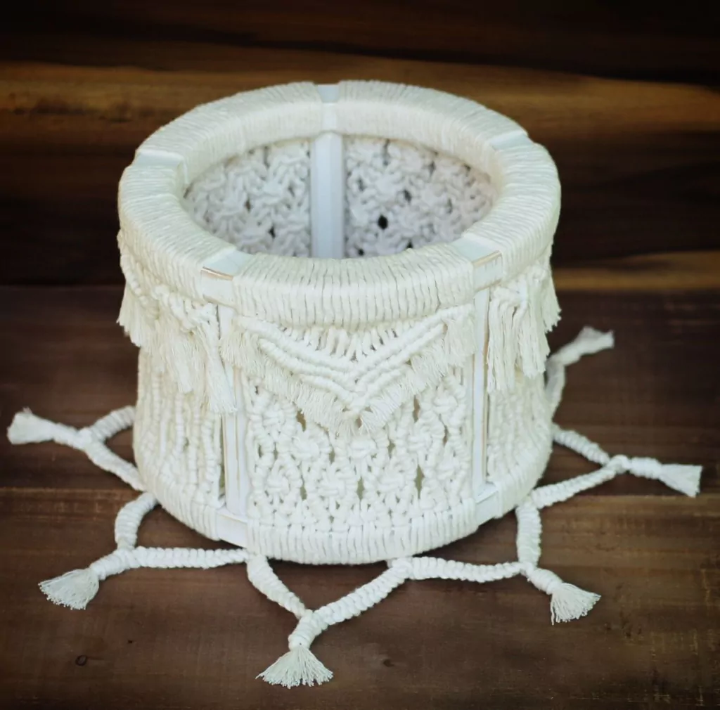 Esse prop lindo vai deixar seu ensaio newborn ainda mais incrível! Com detalhes em macramê e borda mais larga para facilitar o posicionamento.