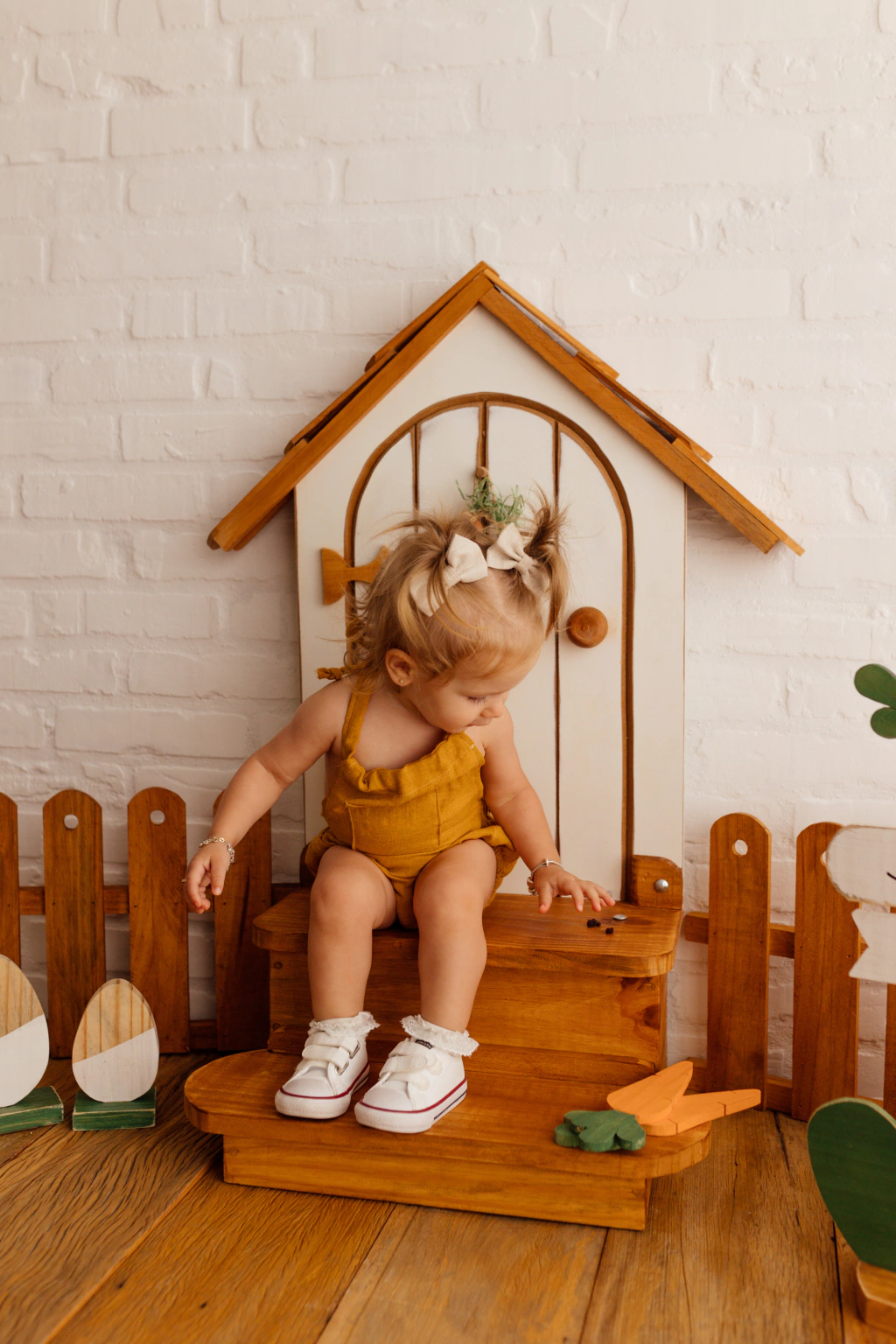 Ele conta com 15 itens no total, e todos em madeira. São eles: