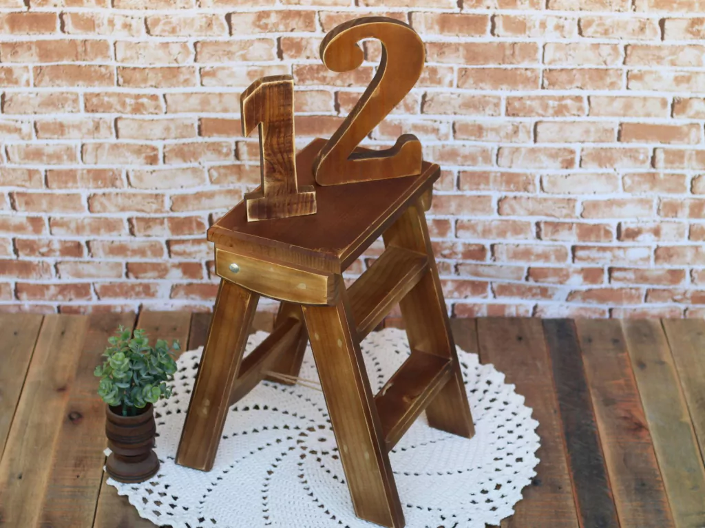 Escada de madeira com acabamento em pátina (pintura desgastada), que deixa a peça linda, muito versátil e com estilo vintage. Linda para uso em sessões de acompanhamento, smash e um mundo de composições que você pode criar.