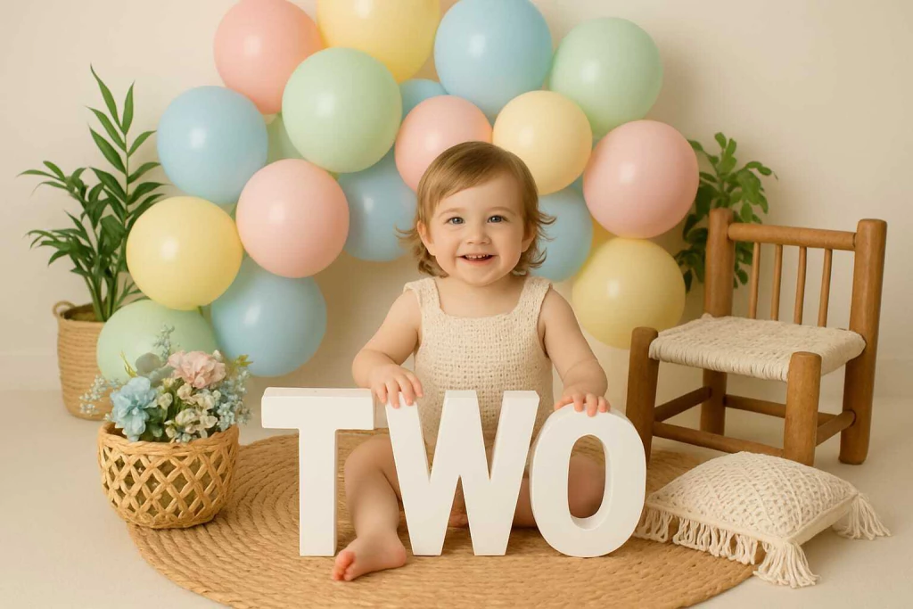 Letras TWO para ensaio de 2 aninhos em madeira.